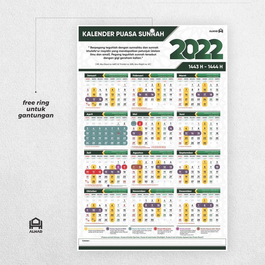 Jadual tarikh puasa sunat dan wajib tahun 2022.